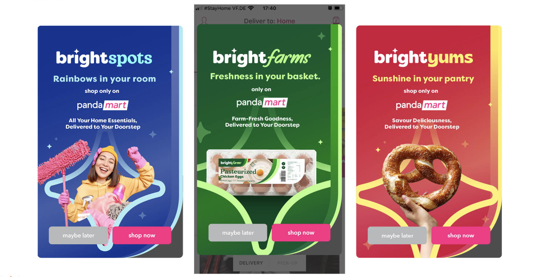 The new bright product range follows a successful introduction of foodpanda’s house brand offerings on pandamart, which debuted as brightfields in 2021. Product offerings started with a handful of pantry necessities, including eggs, tissues and mineral water, and have since been expanded to cover a wider range of products, from fresh fruits like Thai coconuts to cleaning products like wet wipes